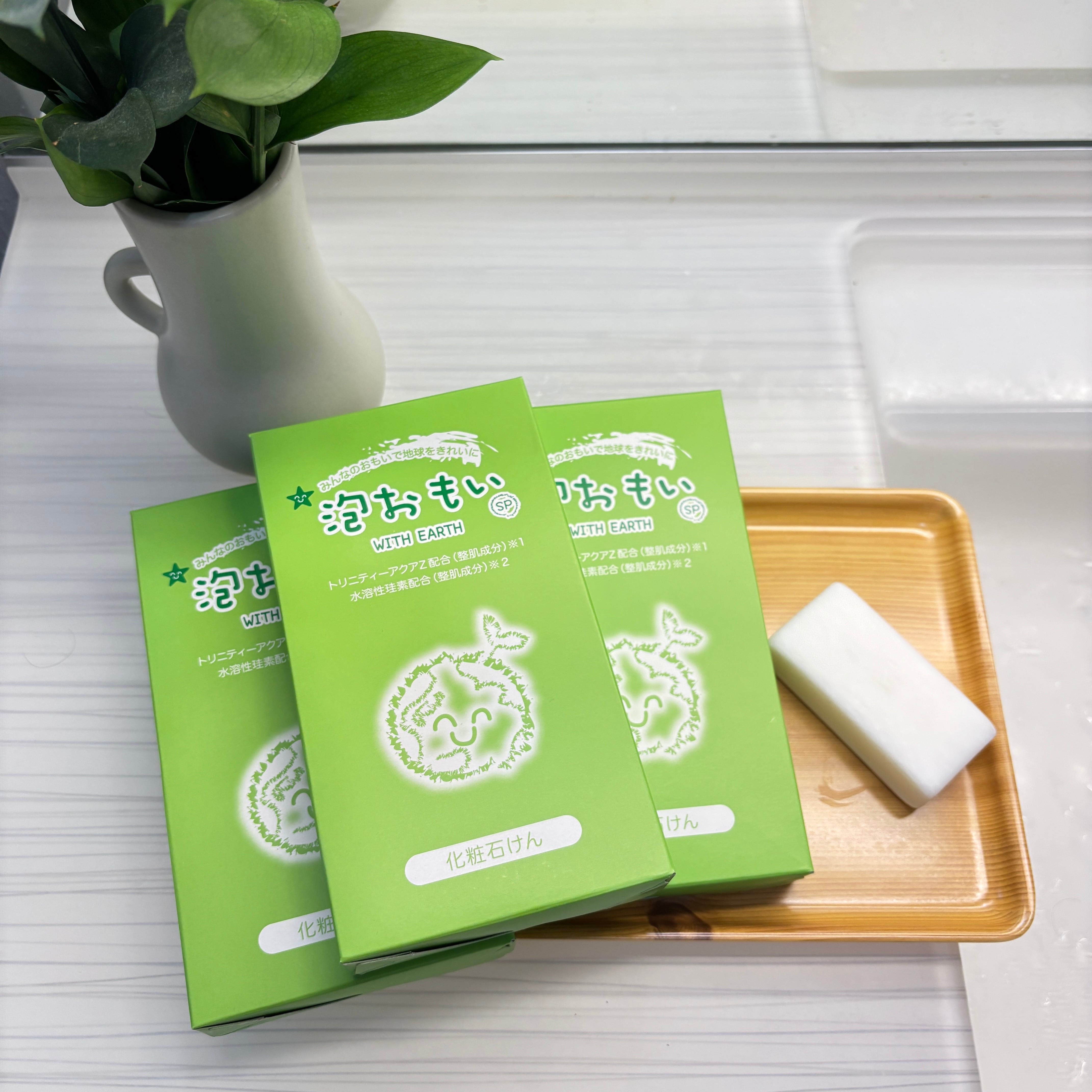 素肌美をサポートするのはもちろん、従来のパッケージからプラスチック使用量70%削減。地球環境にやさしい化粧石けんです。
